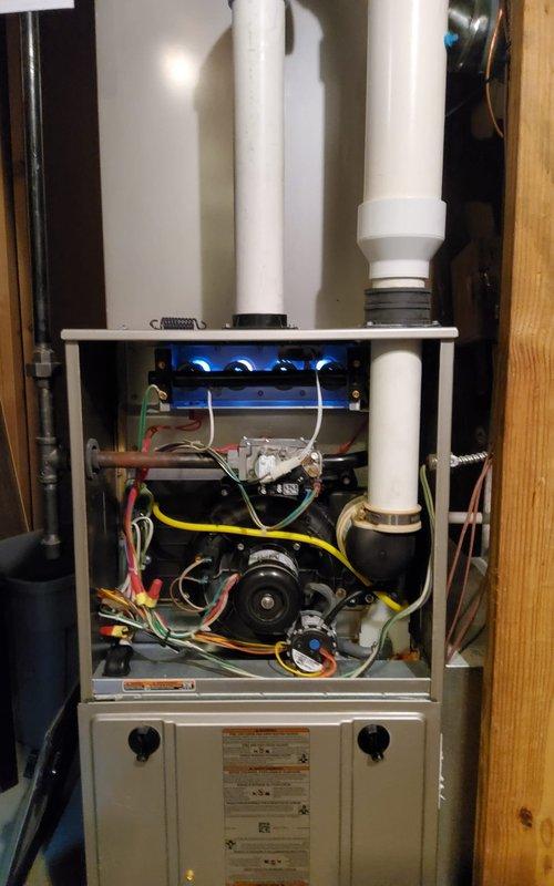 Performed annual heating tune-up on 4-year-old furnace per home service plan. Inspected blower wheel assembly, which was found to be in good working condition with no visible damage or unusual wear. System is operating within normal parameters.