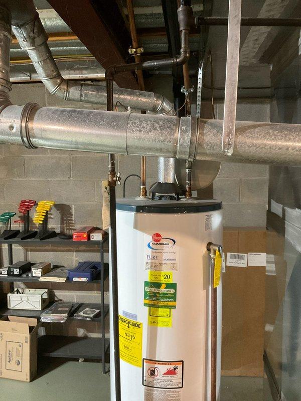 Conducted on-site assessment for replacement of existing Rheem Fury water heater. Evaluated current installation including supply lines, valves, and recommended installation of expansion tank to be mounted above the new unit. Provided comprehensive estimate for complete water heater system replacement with all necessary components and labor.