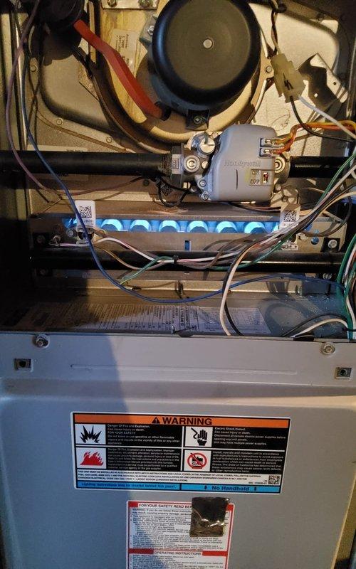 Performed scheduled heating tune-up on gas furnace system. Inspected burner assembly, which showed proper ignition and flame pattern. Checked and tested blower motor, electrical connections, and heat exchanger - all components operating within normal parameters.