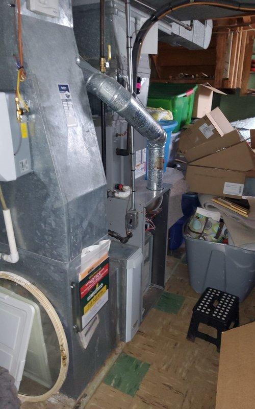 Performed on-site evaluation for air conditioning system addition to existing forced-air heating system. Assessed current furnace installation, ductwork configuration, and electrical panel capacity to determine compatibility and requirements for AC integration. Documented existing HVAC equipment specifications, supply and return duct routing, and available electrical circuits. Confirmed adequate electrical service disconnect present and verified panel capacity for additional cooling system load. Evaluated mechanical room layout and clearances for potential evaporator coil and condensing unit installation.