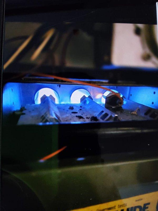 Responded to service call for non-operational furnace. Upon inspection, found debris accumulation in burner compartment. Cleaned burner assembly and verified proper ignition sequence with blue flame pattern. System now functioning normally with all safety controls operational.