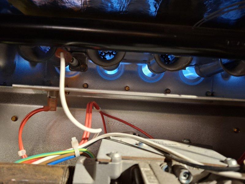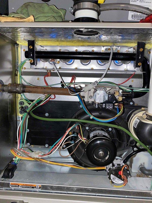 Performed scheduled heating tune-up on gas furnace system. Inspected burner assembly which showed proper blue flame pattern indicating good combustion. Examined gas valve controls, electrical connections, and verified proper operation of ignition system and safety controls. All components functioning within normal parameters.